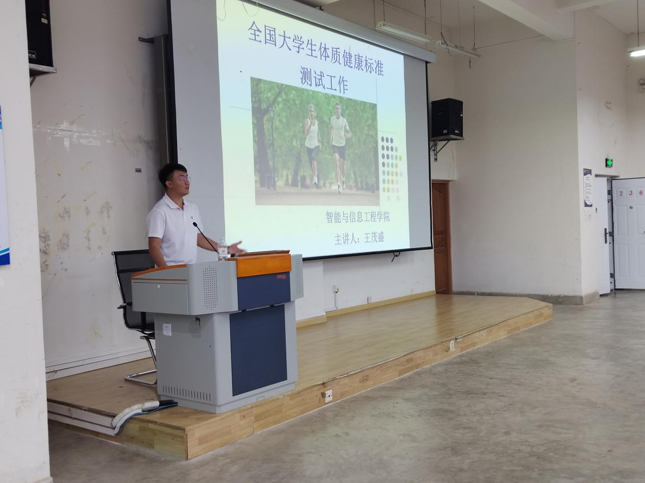 然后,王茂盛老师从国家学生体质健康标准、体质健康标准的文件精神、国家对体质健康标准要求、评定等级与处罚、特殊情况的免测处理和学校的相关要求、体质健康数据测试时间及地点、体质健康测试项目、体质健康测试项目成绩对照表等内容进行讲解,向同学们强调在日常锻炼中一定要注意人身安全、并学会保护自己及注意个人财产安全。