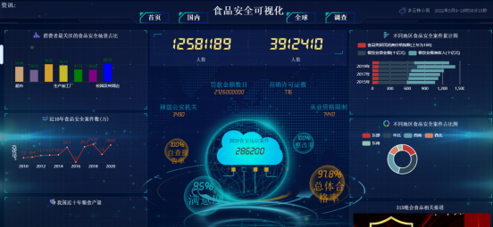 作品简介:在大数据时代下的今天,抓住信息化发展的机遇,掌握动态信息的发展,就能进一步提高工作效率,使用数据可视化逐步成为一种新兴趋势,在这样的背景下,“万联安—食品安全数据可视化”应运而生。作品主要基于web应用来研发,开发范围十分广泛,涉及到前端设计布局、网页主体架构、后端信息获取、后端各类接口连接、数据库数据提取、前端后端的接口连接和数据实时交互以及项目服务器的部署和连接。作品可给食品质量监管部门使用,让监管部门适时的掌握各类餐馆和店铺的食品安全数据,维护人民群众的健康。