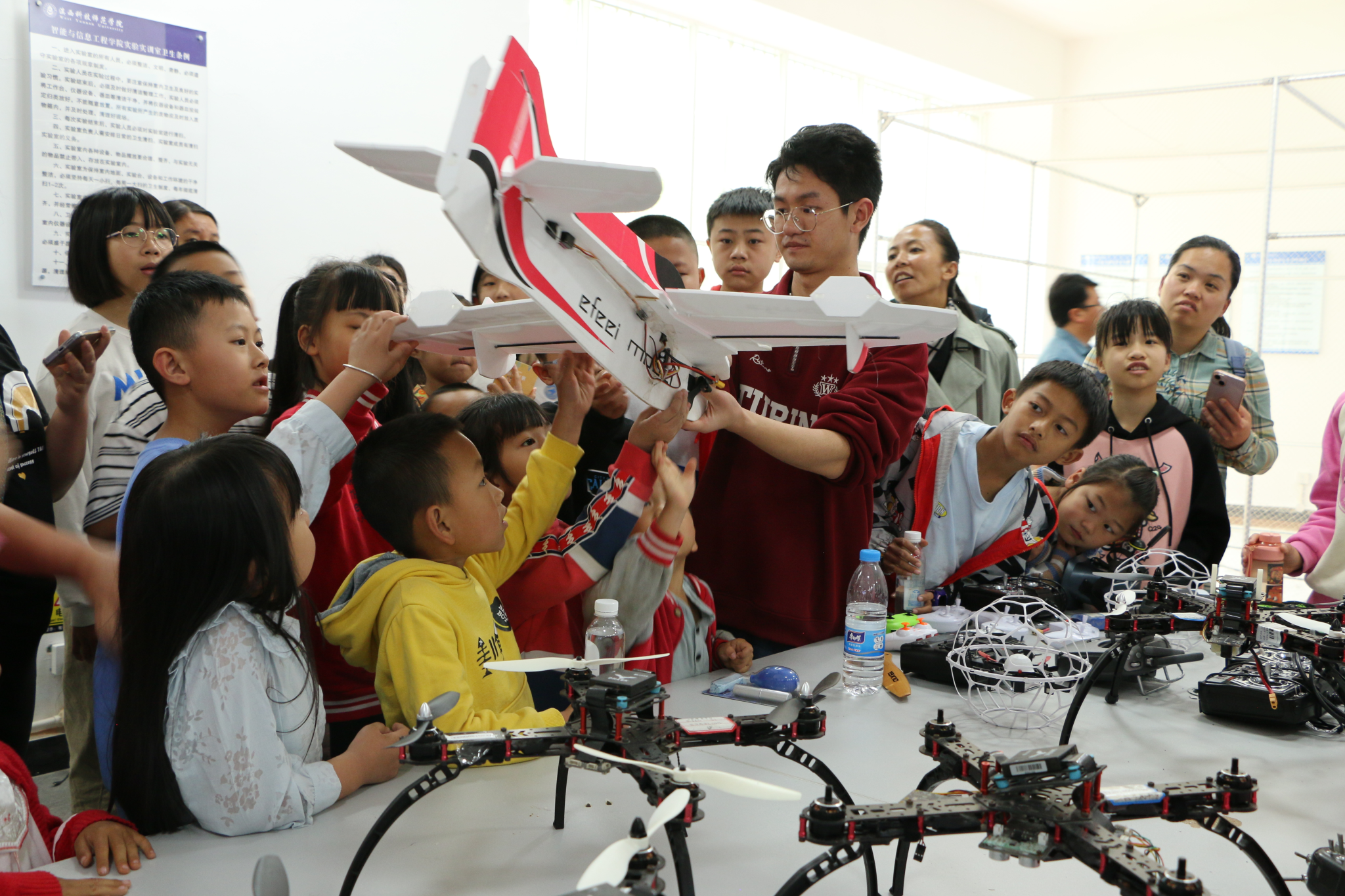 小朋友们在无人驾驶航空器系统工程实训中心了解航模