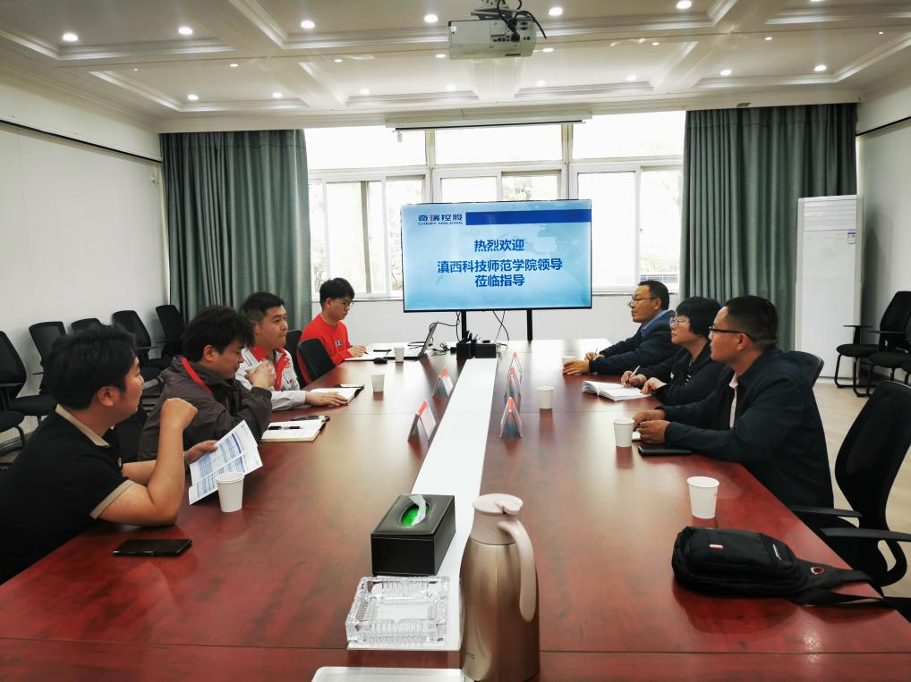 考察组一行参观了企业生产线,并与公司开展座谈交流。企业方介绍了公司基本概况、人才需求等方面情况,学院介绍了专业设置、毕业生资源等方面情况,双方就人才招聘、校企合作、学生实习等方面进行深入交流。
