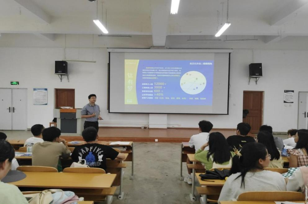 讲座现场,张经理向同学们介绍了公司的基本概况,分析了公司的区位优势、核心竞争力以及未来的发展趋势,说明了公司给予员工的薪资待遇、未来发展前景等。